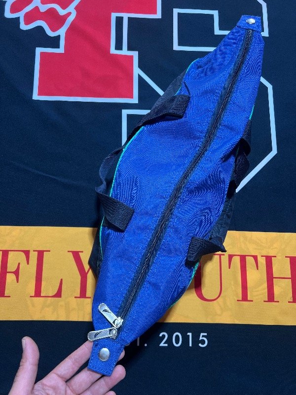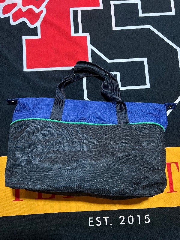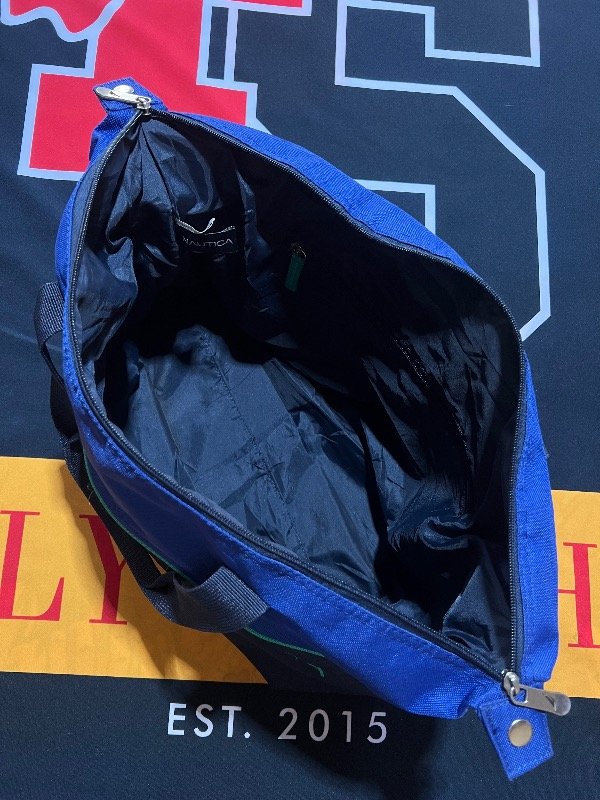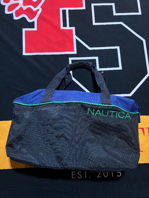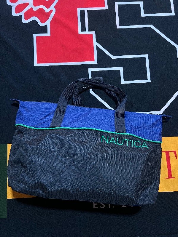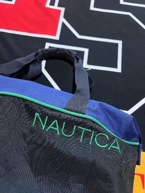 Bolso Náutica tricolor (azul, verde y gris oscuro. Es amplio.