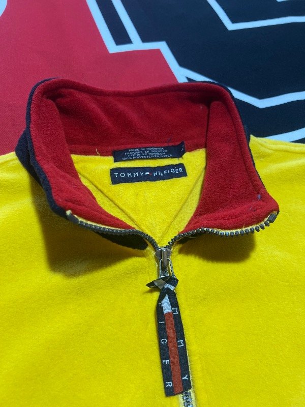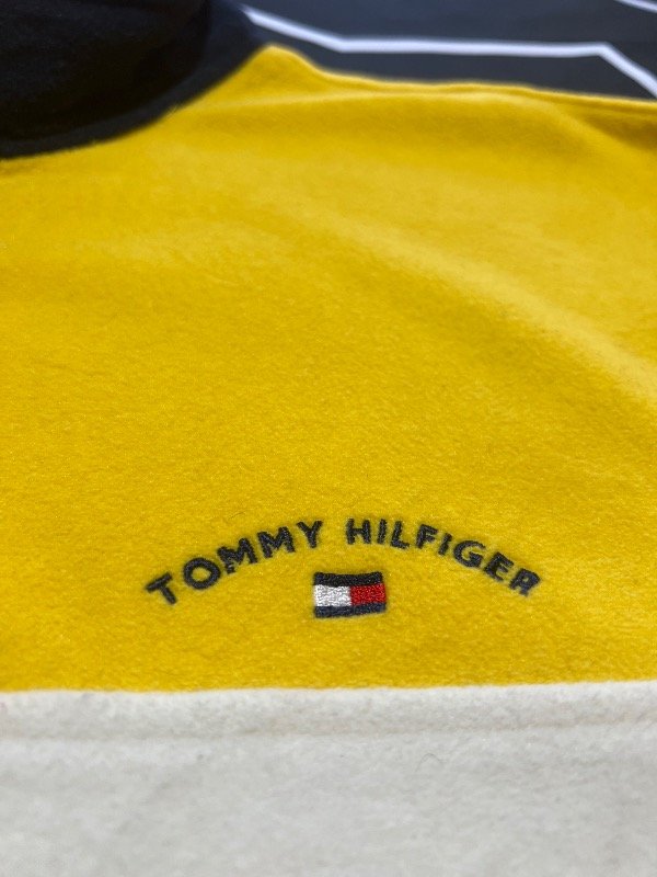 Buzo polar Tommy Hilfiger bicolor, amarillo y blanco. Prenda vintage.