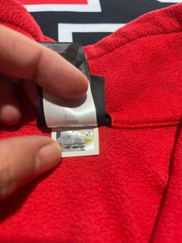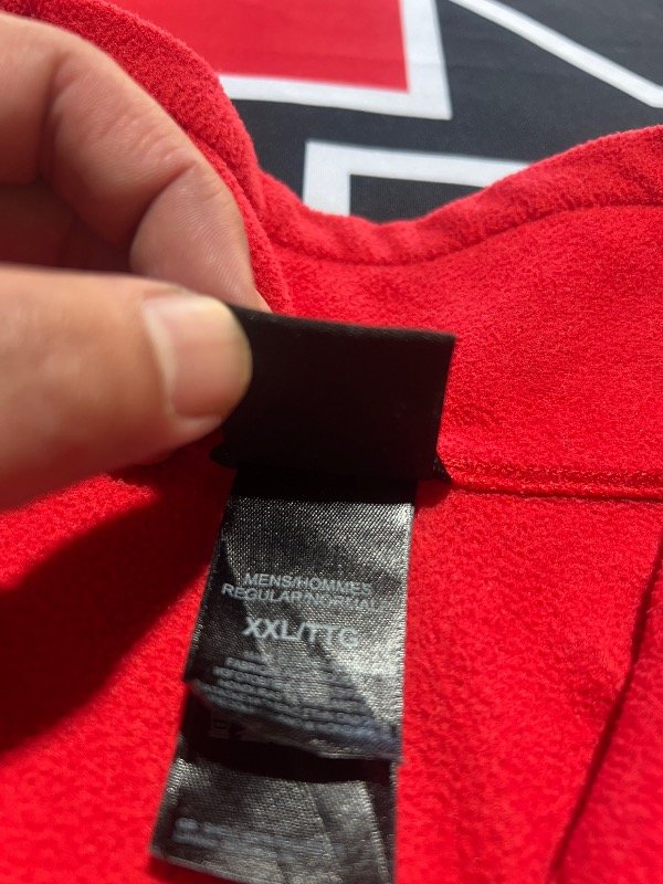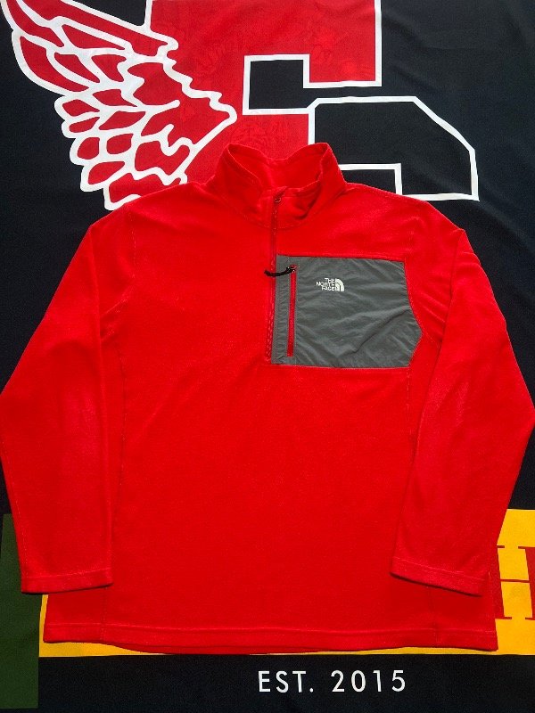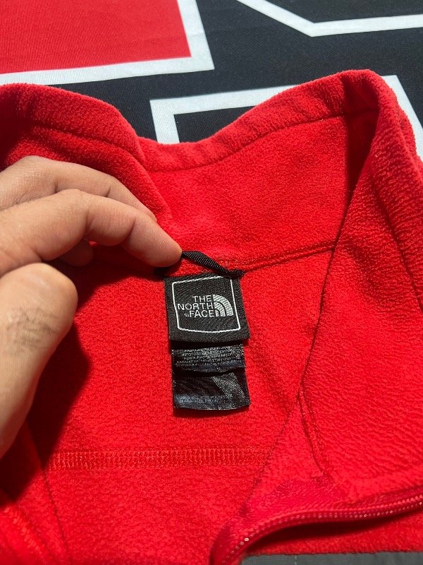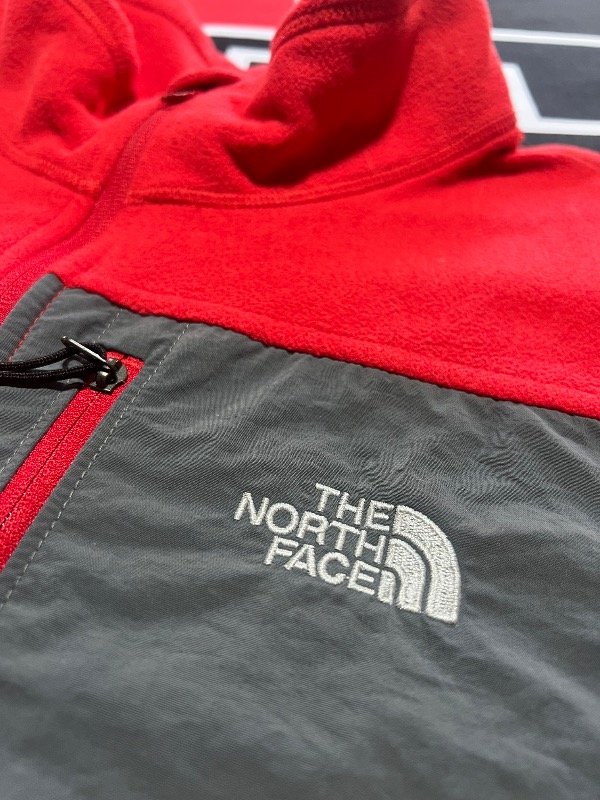 Micropolar The North Face bicolor, rojo y gris. La parte roja es de Micropolar, la gris del bolsillo impermeable.