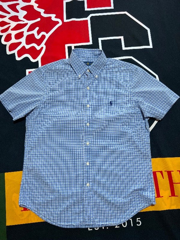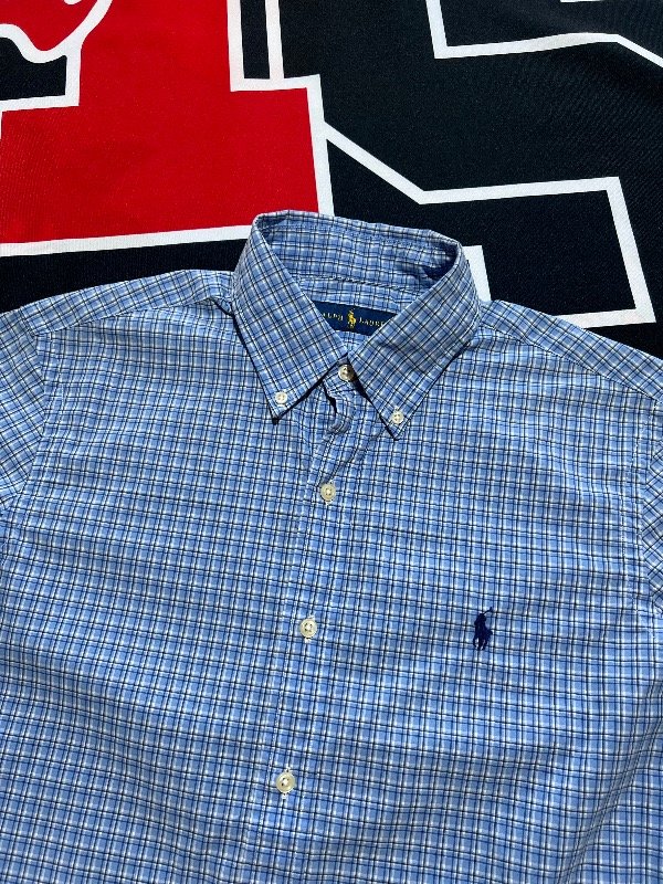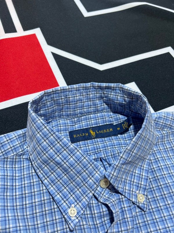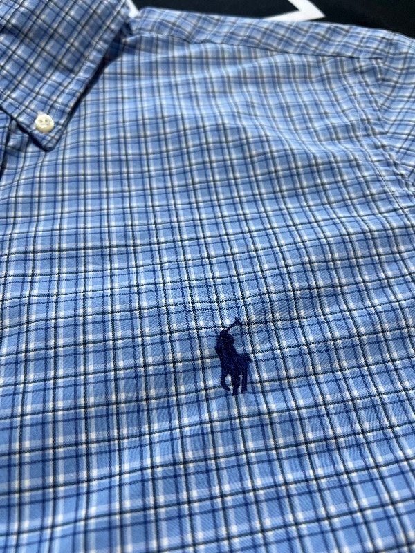 Camisa Polo Ralph Lauren celeste y blanca, manga corta.