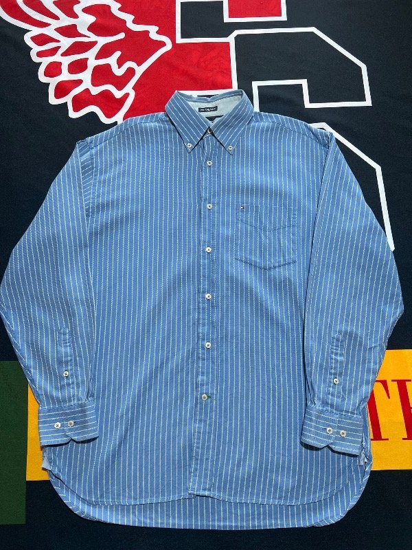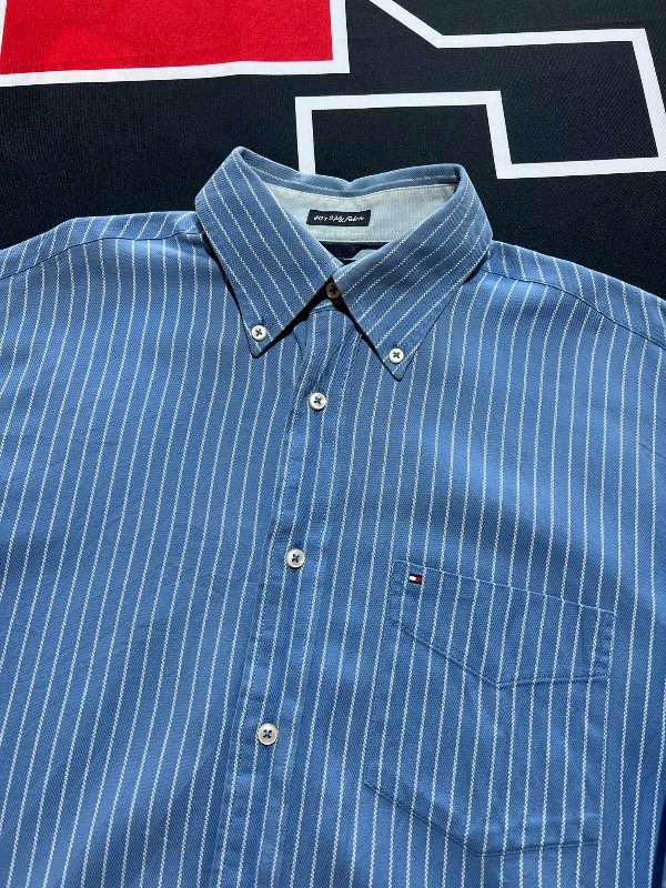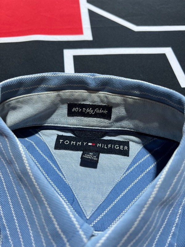 Camisa Tommy Hilfiger celeste y blanca.