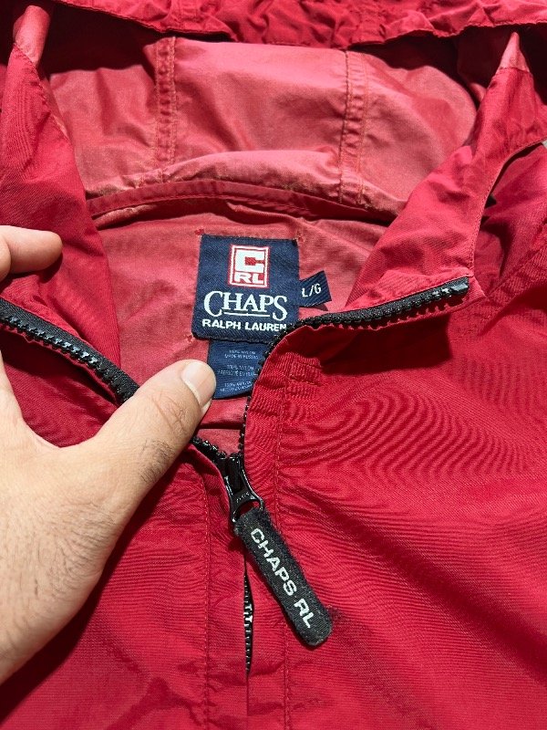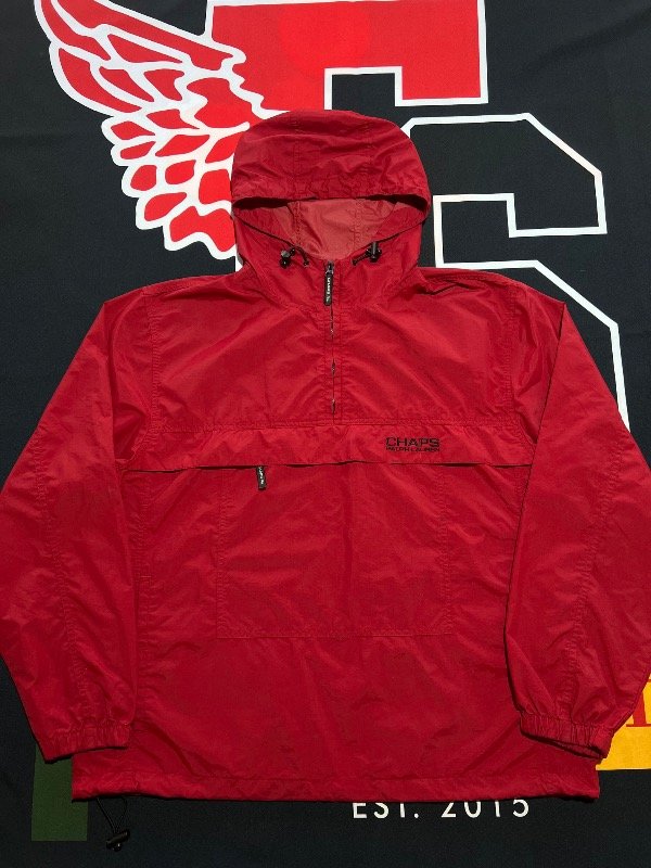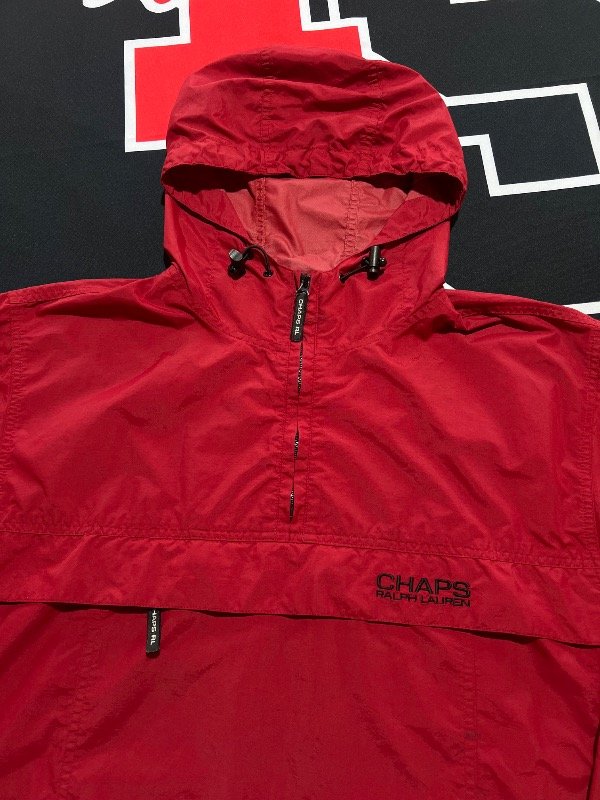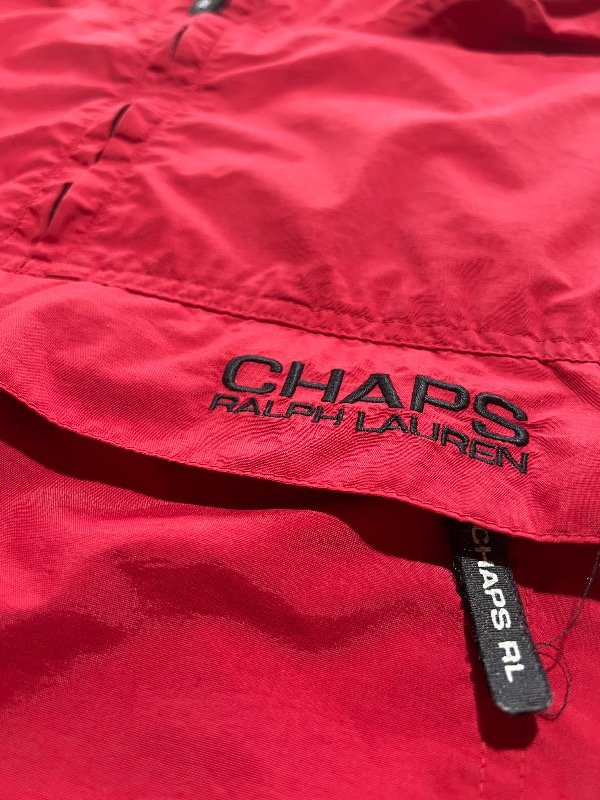 Anorak Chaps Ralph Lauren rojo, rompeviento. Tiene 3 bolsillos frontales. Prenda vintage.