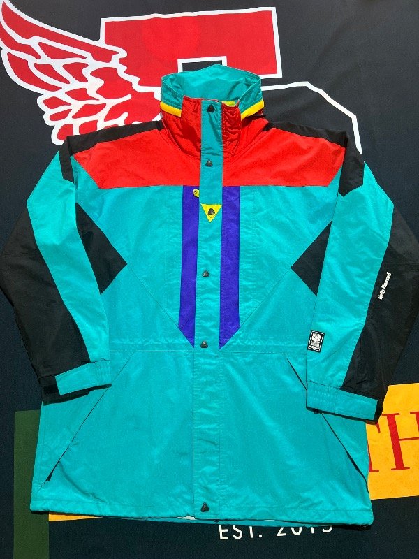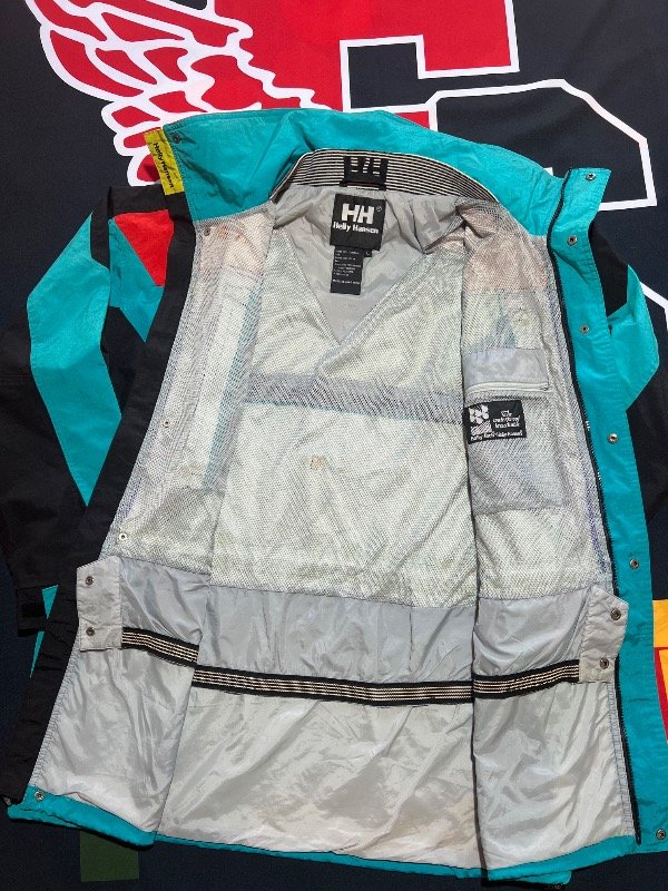 Parka Helly-Hansen Equipe. Tecnología Helly-Tech, impermeable. Tiene trampa de nieve, ajustador de cintura y muñecas, 4 bolsillos delanteros y 1 interno. Solo le falta la capucha. Prenda vintage.