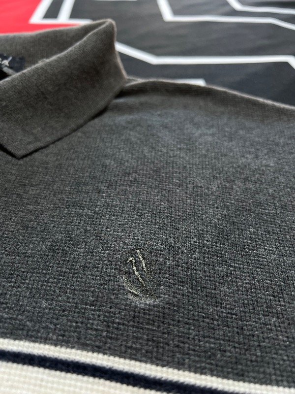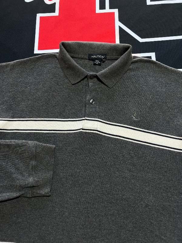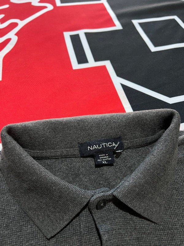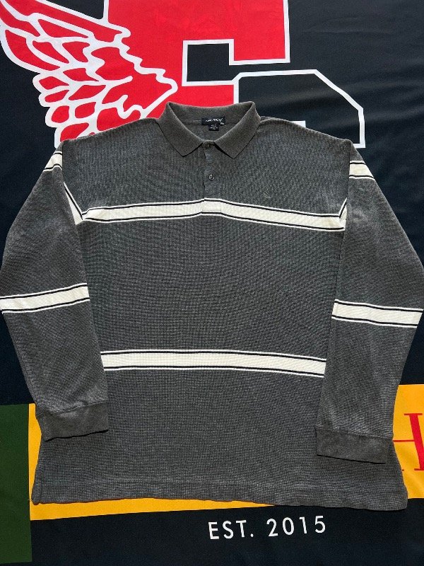 Chomba Nautica manga larga, tricolor (gris, blanco y azul oscuro). De piqué. Prenda vintage.