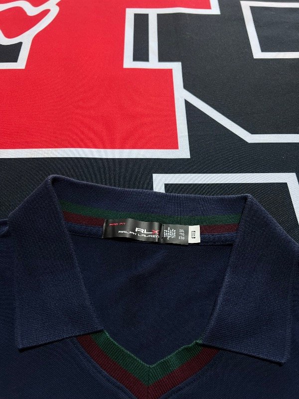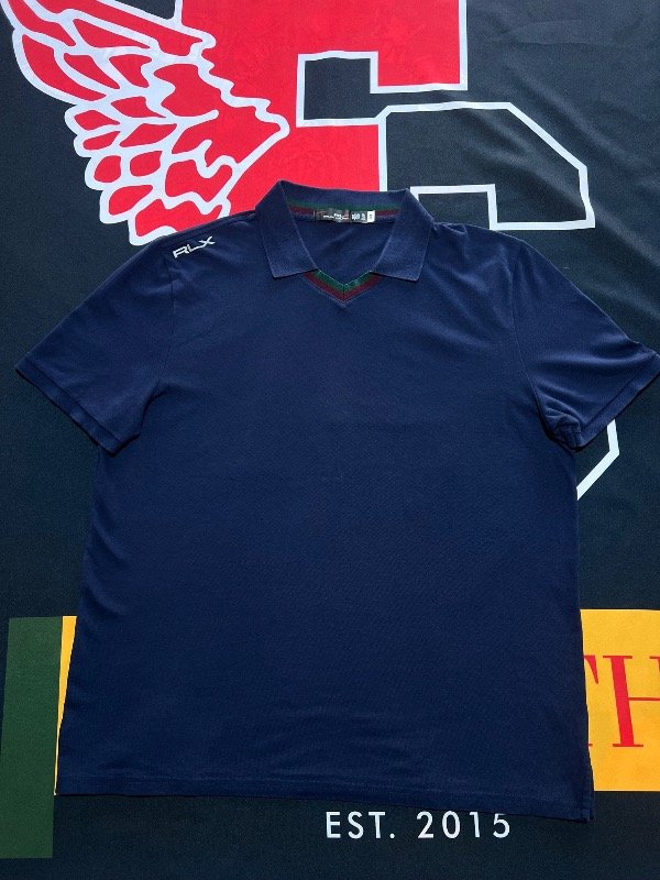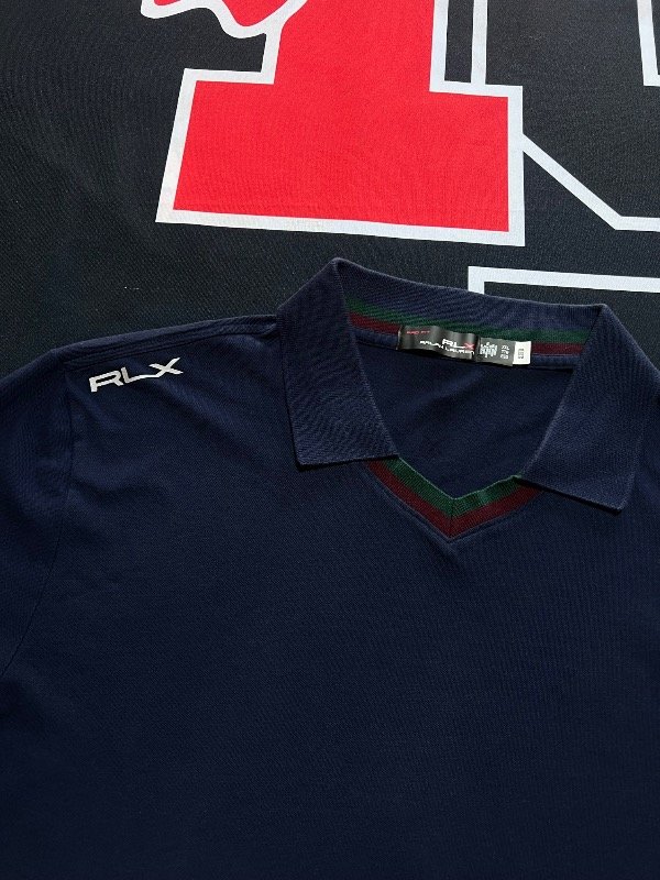 Chomba RLX Ralph Lauren azul oscura, de piqué liviano.
