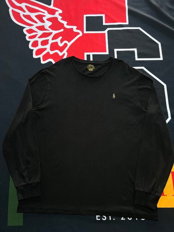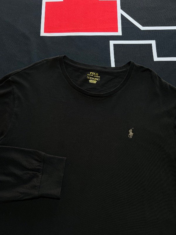 Remera Polo Ralph Lauren negra manga larga, de algodón.