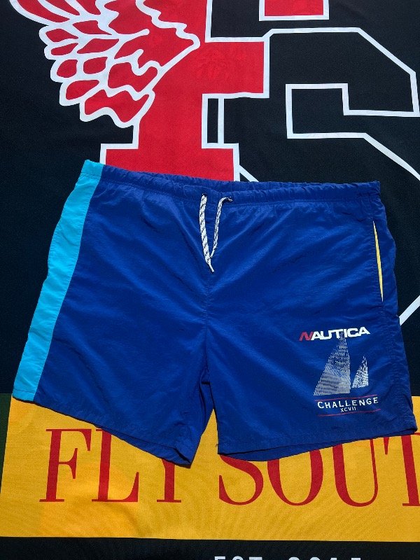 Short de baño Náutica Challenge, bicolor. Tiene bolsillos y ajustador de cintura. Prenda vintage.