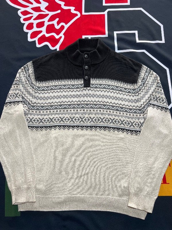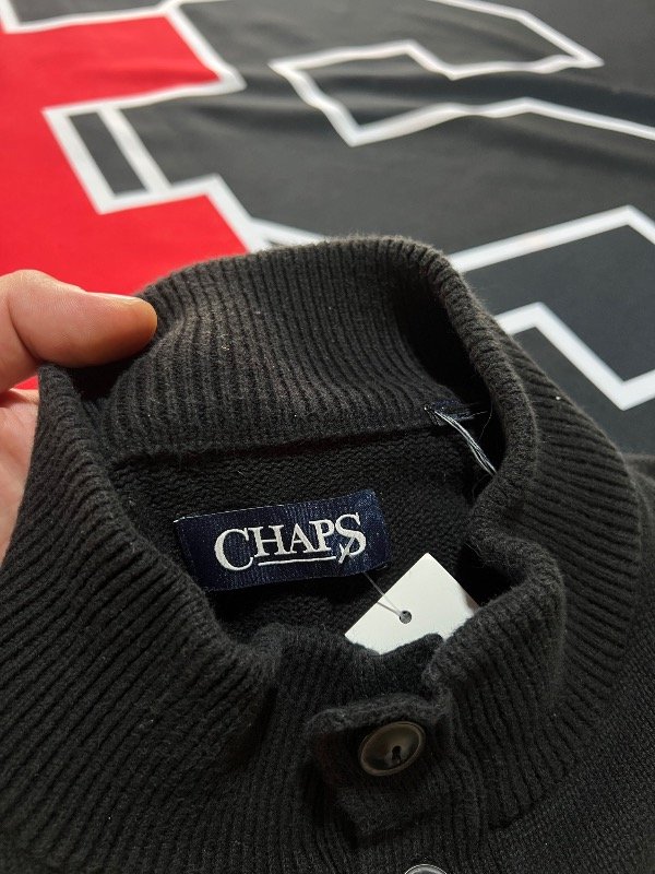 Sweater Chaps con diseño, de algodón. Tiene gamas de colores gris hueso, negro y gris claro.