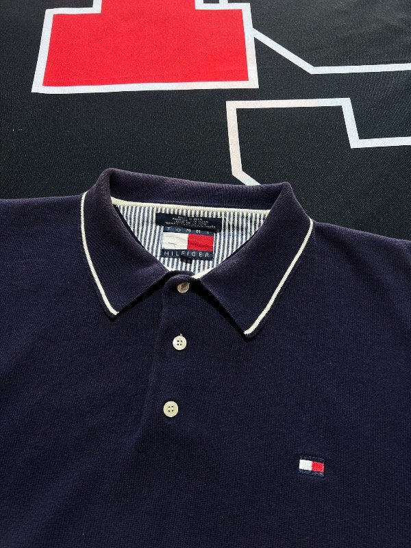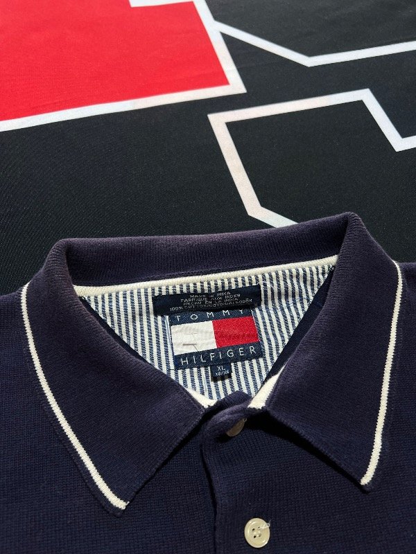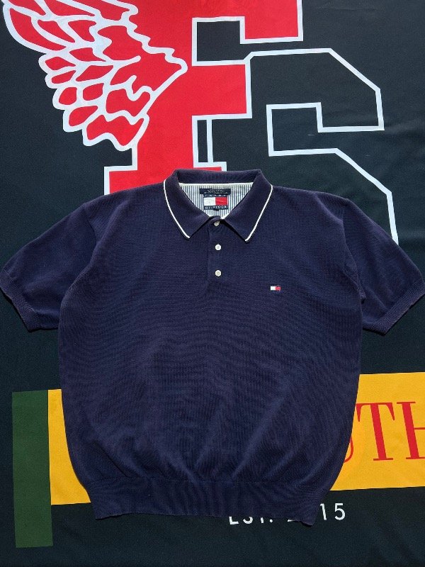Sweater Tommy Hilfiger manga corta, azul oscuro. Prenda rara vintage.