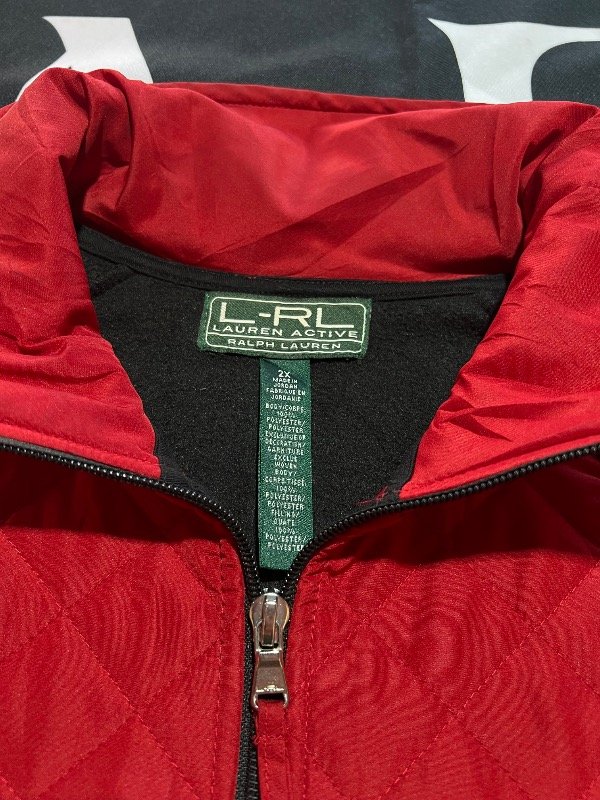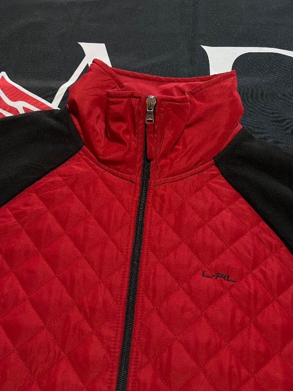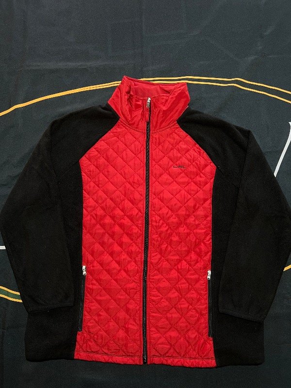 Campera Lauren Ralph Lauren Active, bicolor, la parte roja es rompeviento, la negra polar.