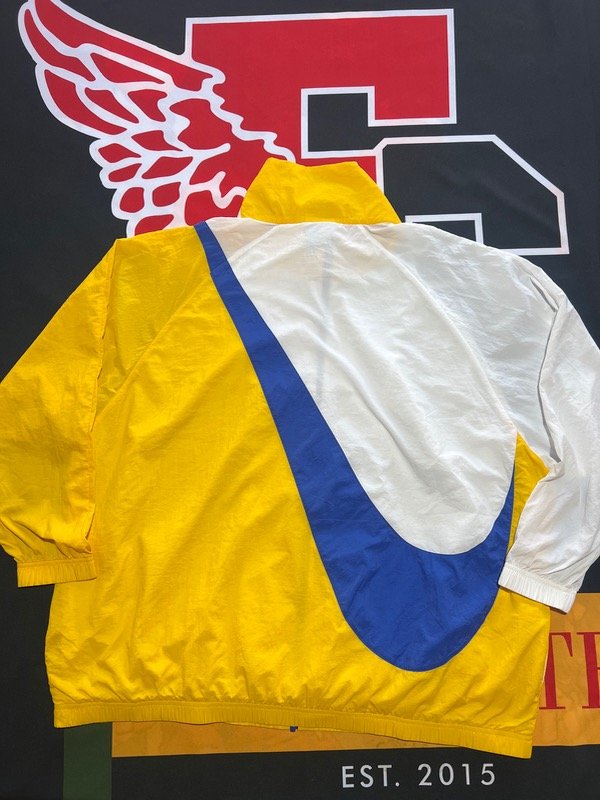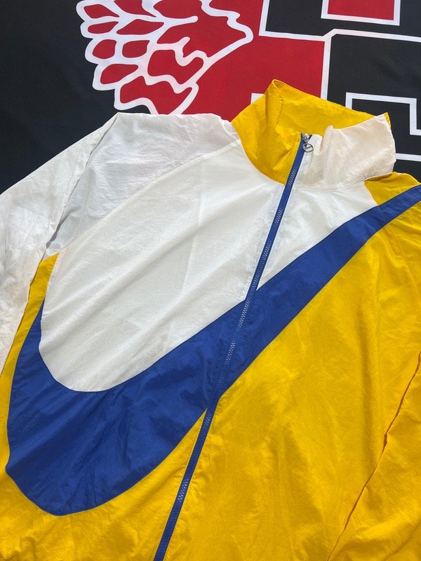 Rompeviento Nike Big Swoosh tricolor (blanca, amarilla y azul)
