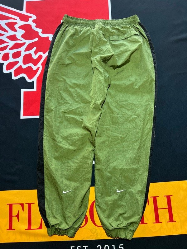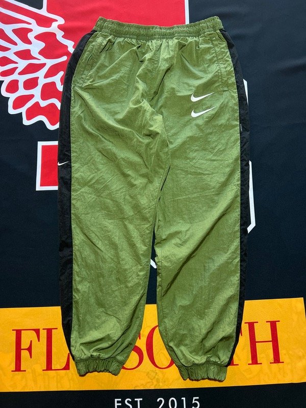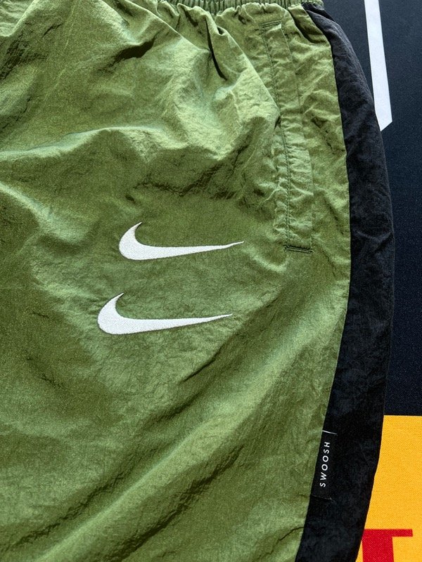 Pantalón Nike NSW doble Swoosh, rompeviento. Logos bordados, tiene bolsillos con cierre, puño en los tobillos y ajustador de cintura.