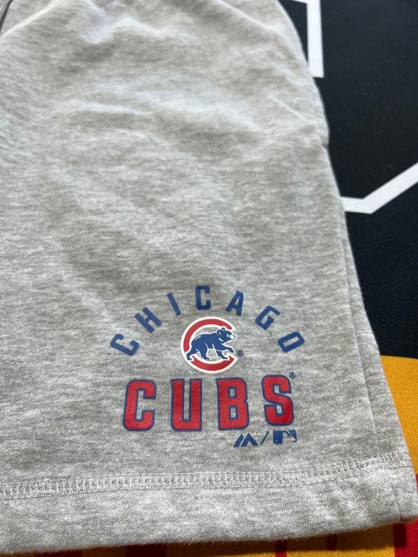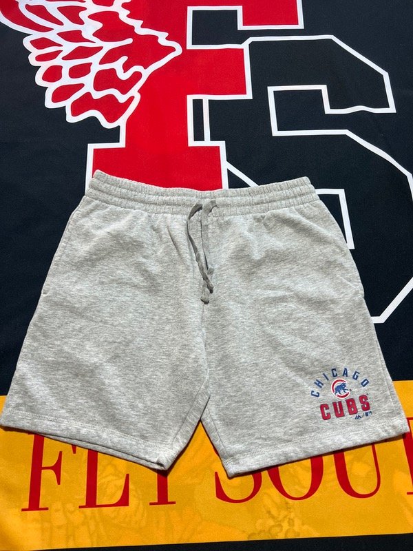 Short Majestic x Chicago Cubs, gris de algodón. Tiene bolsillos y ajustador de cintura.