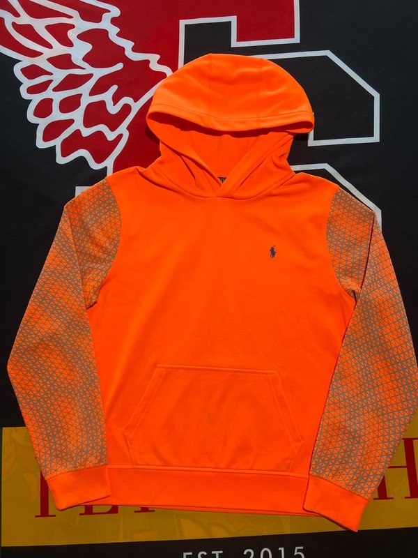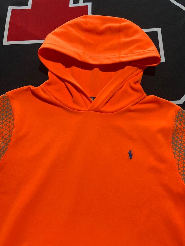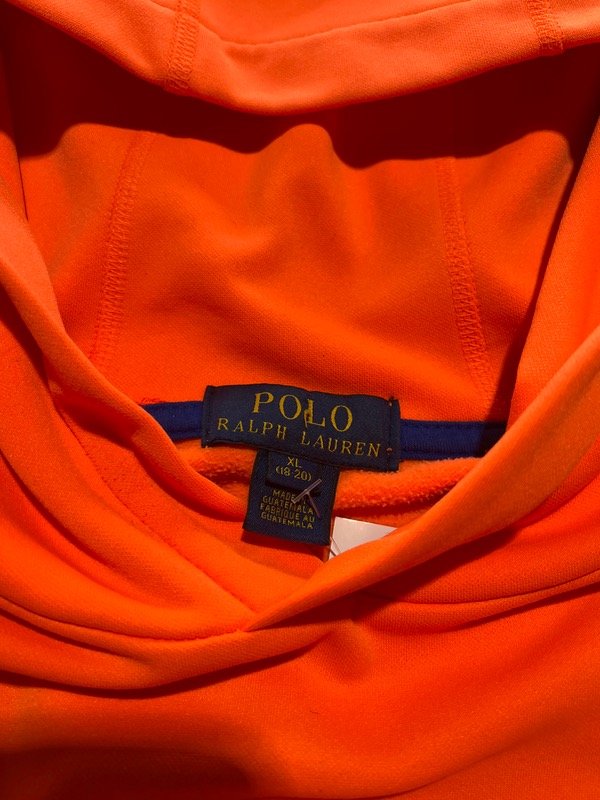 Buzo canguro Polo Ralph Lauren naranja de algodón, los detalles de las mangas son color grises.