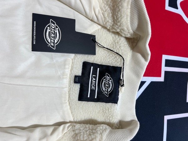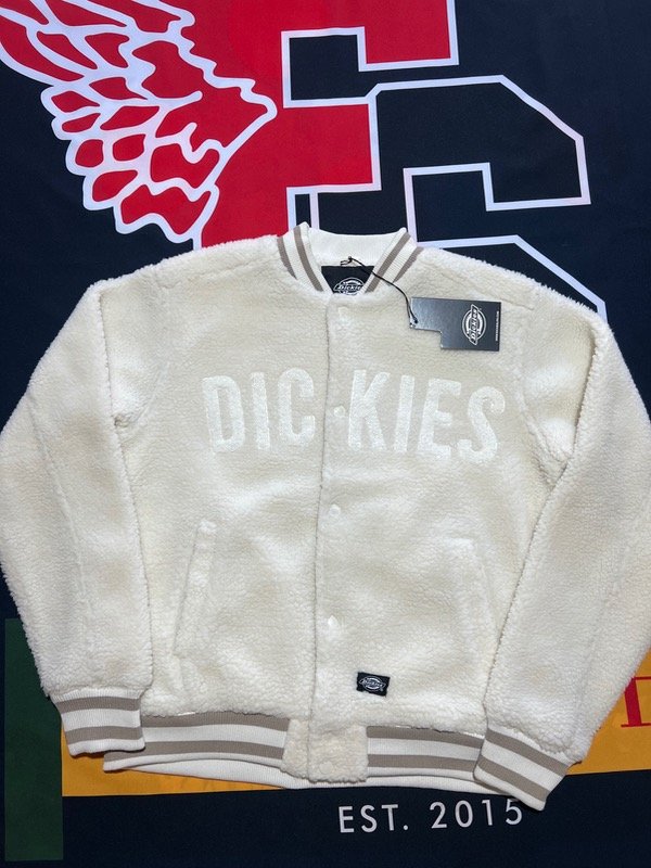 Campera sherpa Dickies, estilo bombero, color blanca.