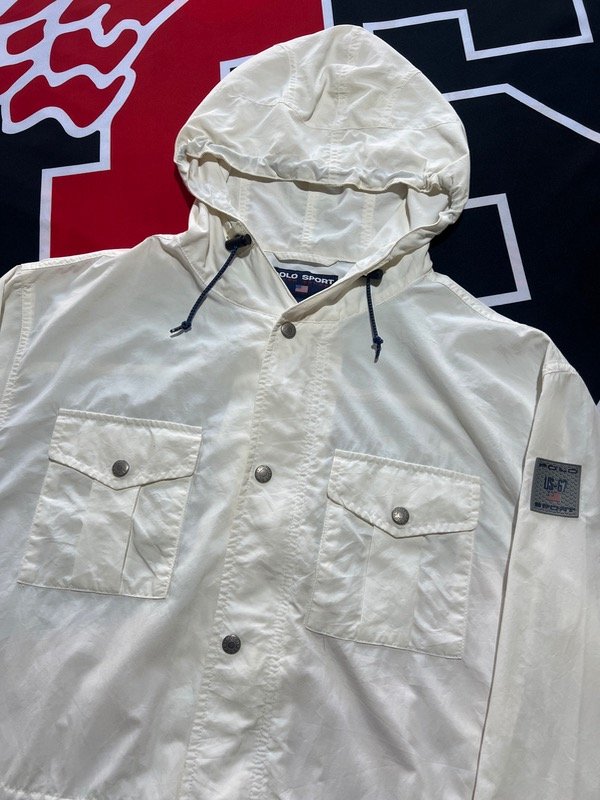 Parka Polo Sport, es fina. Perfecto estado general, sin manchas ni roturas. Tiene 4 bolsillos delanteros y ajustador de cintura y capucha.