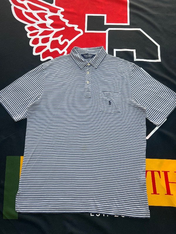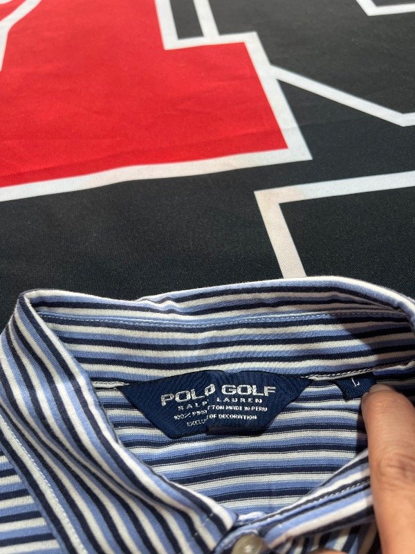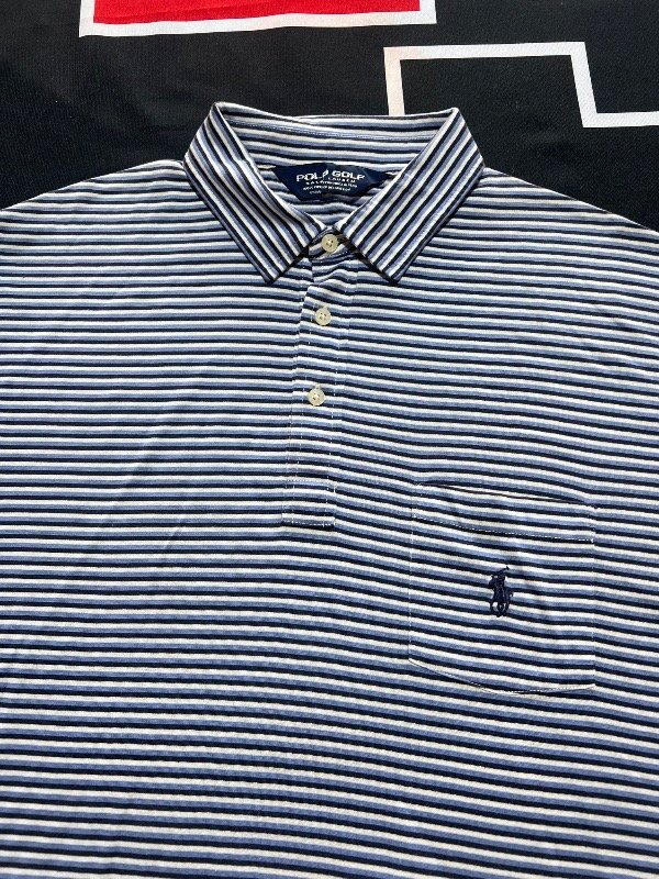 Chomba Polo Golf Ralph Lauren tricolor (Blanca, azul y celeste), de algodón. Prenda vintage.