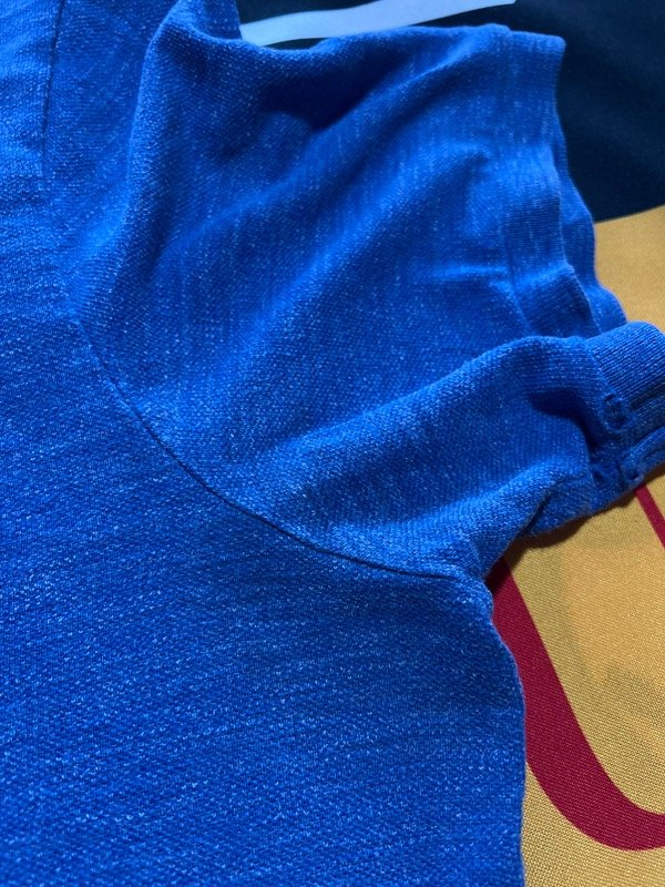 Tiene un poco de desgaste general, el color sigue bien. Tiene el arreglito hecho en la nuca y un poquito de desgaste en las axilas, es muy poco.