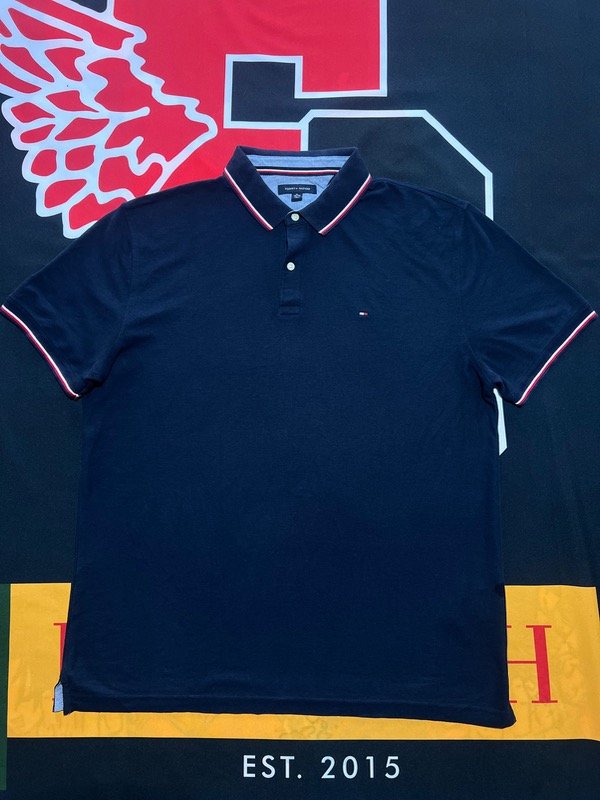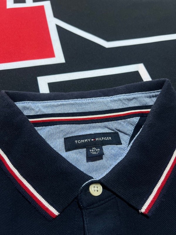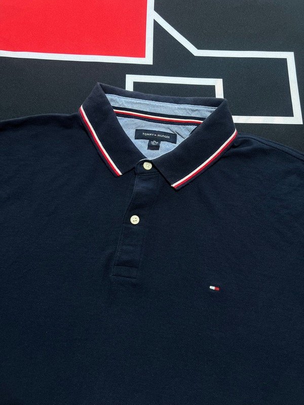 Chomba Tommy Hilfiger azul oscura, de piqué liviano.