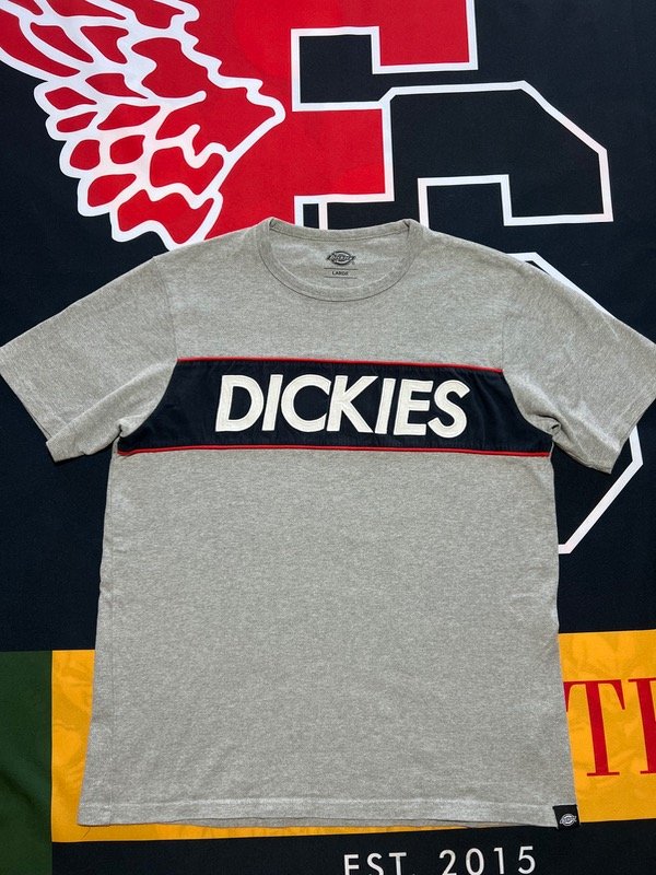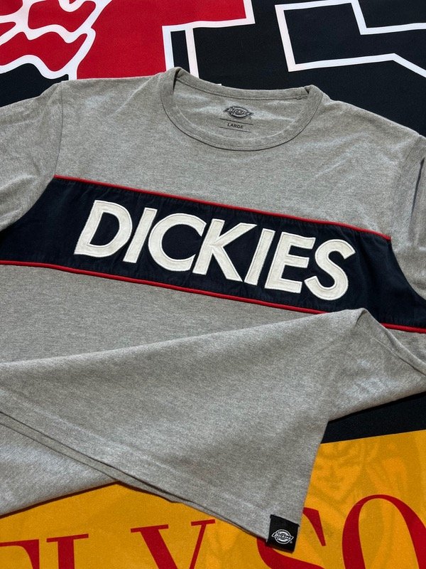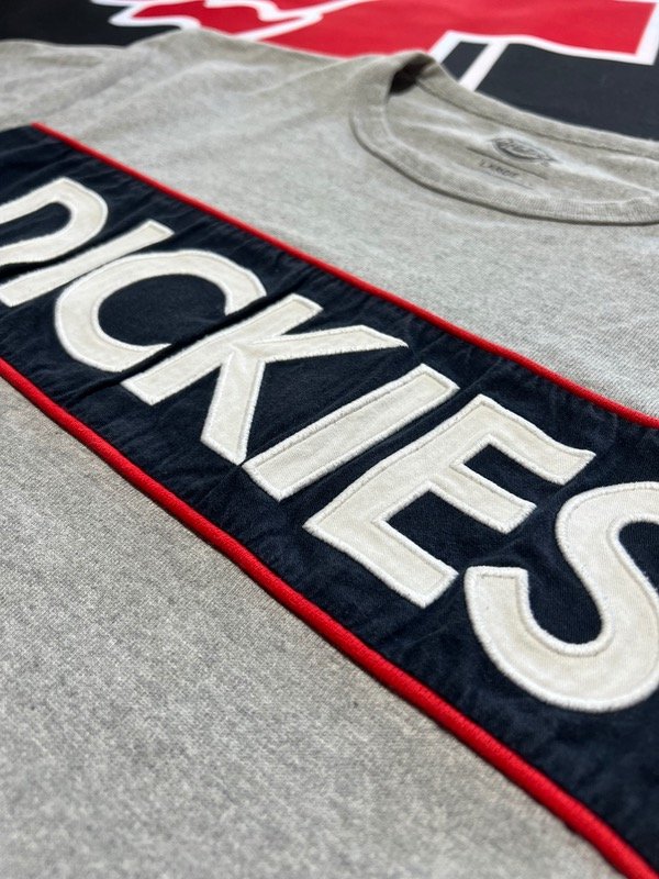 Remera Dickies Spell out, gris de algodón. La tela es gruesa.