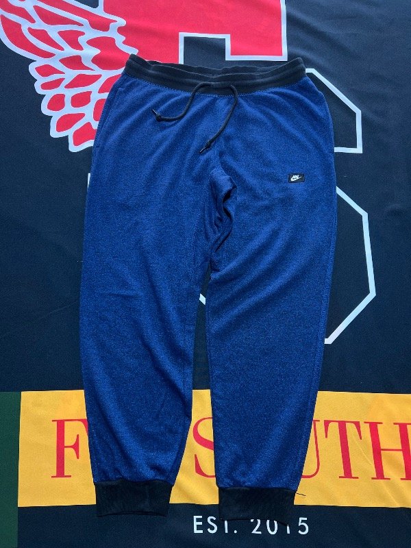 Jogging Nike Azul oscuro, de algodón. Puños color negro, tiene bolsillos.