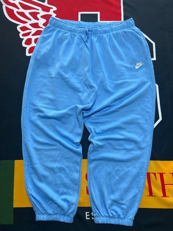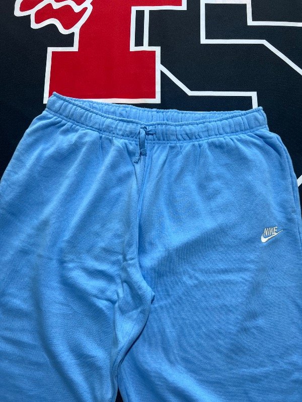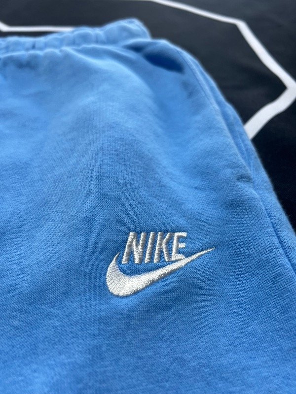 Jogging Nike celeste, de algodón. Tiene puños en los tobillos.