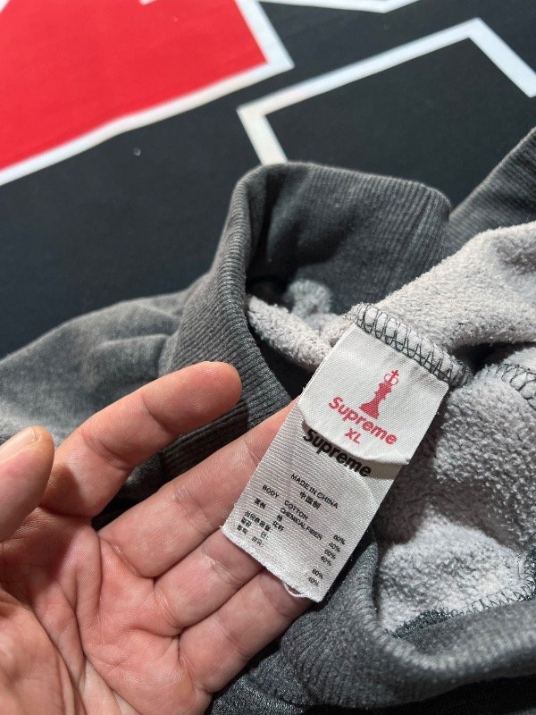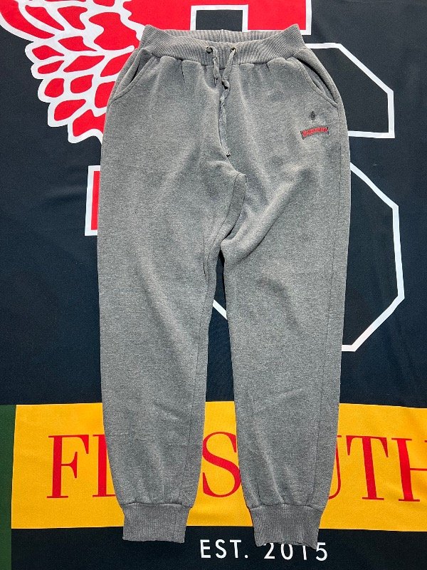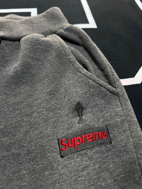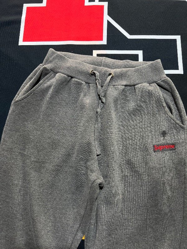 Jogging Supreme gris, de algodón. Estoy en duda si es original o réplica. Los materiales son buenos al igual que su confección.