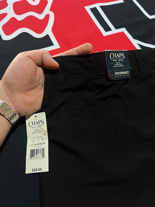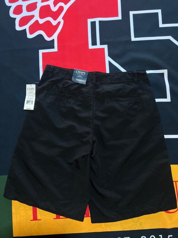 Bermuda Chaps performance negra, estilo golf, secado rápido.