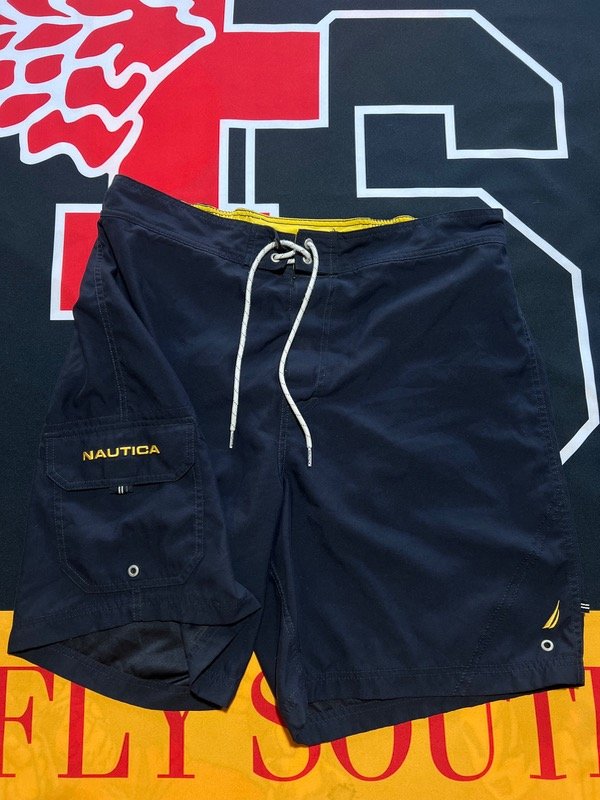 Short de baño Náutica azul oscuro. Solo tiene el bolsillo cargo.