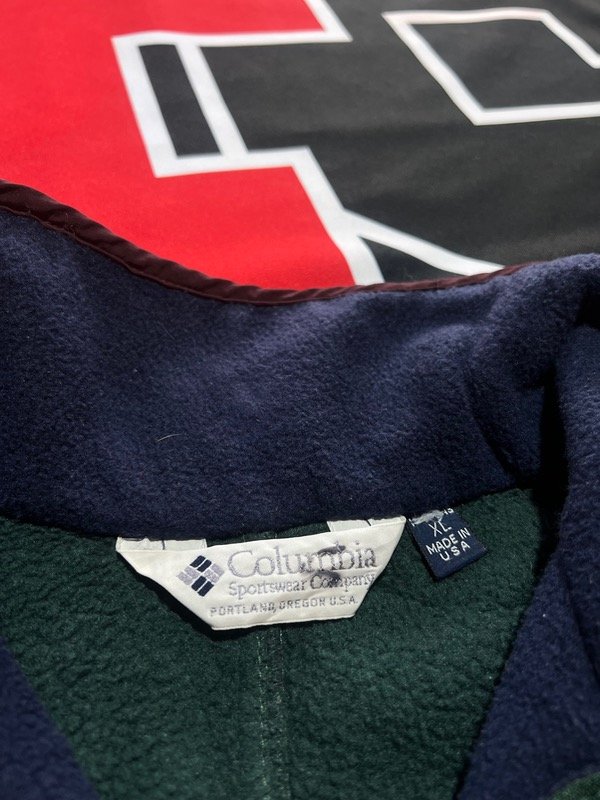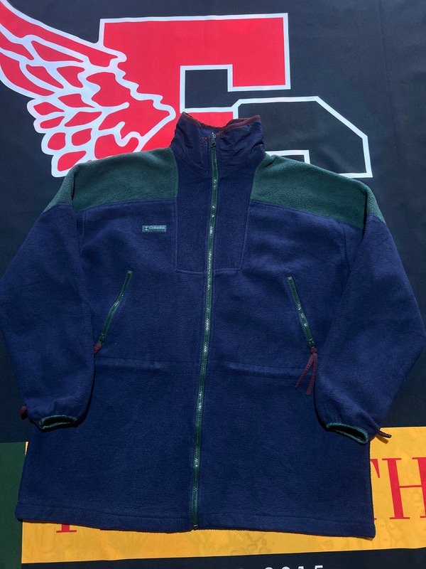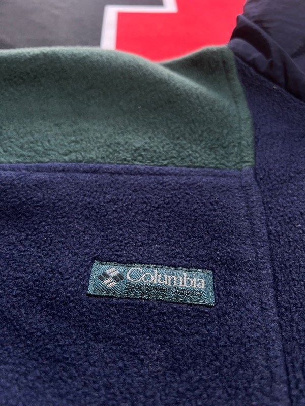 Campera Columbia polar, bicolor, azul oscuro y verde.